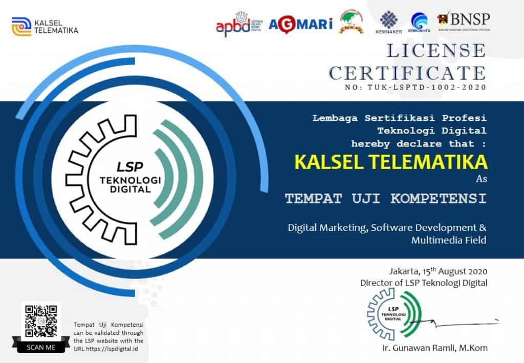 KALSEL TELEMATIKA – Kerjasama Kalsel Telematika dan AS Academy Banjarmasin menyelenggarakan uji kompetensi Sertifikasi Profesi BNSP skema Digital Marketing di AS Academy Training Center.